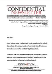 <div>The complete collection of <em>Confidential Newsletter</em> (2003-2009), plus the annual subscription (the next four issues and receive a PDF copy of the last report of <em>Innovation in Newspapers</em></div>